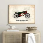 Toile moto vintage montée sur panneau MDF 5 mm, prête à accrocher. Rendu rétro élégant, idéale pour garage, atelier ou salon. Compatible cadres aluminium fins (non fournis). Plusieurs modèles disponibles.