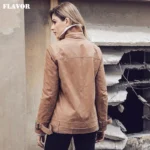 Blouson moto cuir femme marron doublé effet fourrure. Chaud, confortable et élégant, idéal pour l’hiver, le quotidien ou comme idée cadeau motarde.