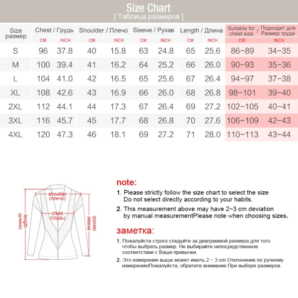 | XXXL | 114–120 | 94–100 | 119–125 | 185–190 |
