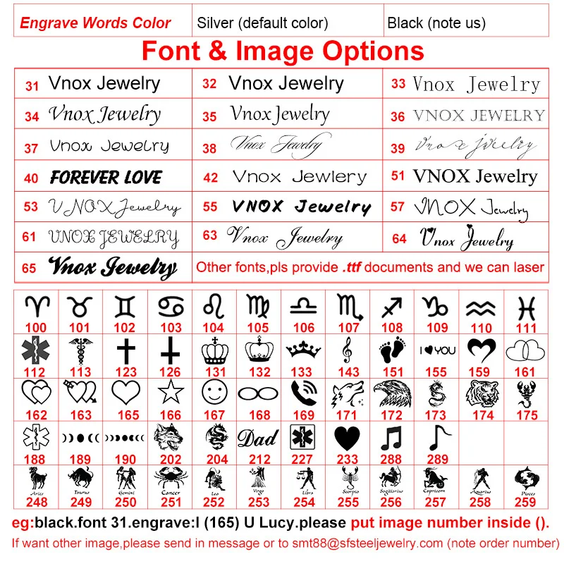 | Couleur du métal | Amour, Croix, Dragon, Étoile, Informations personnalisées, Loup, OM, Scorpion, Soleil, SS, Trois, Viking |