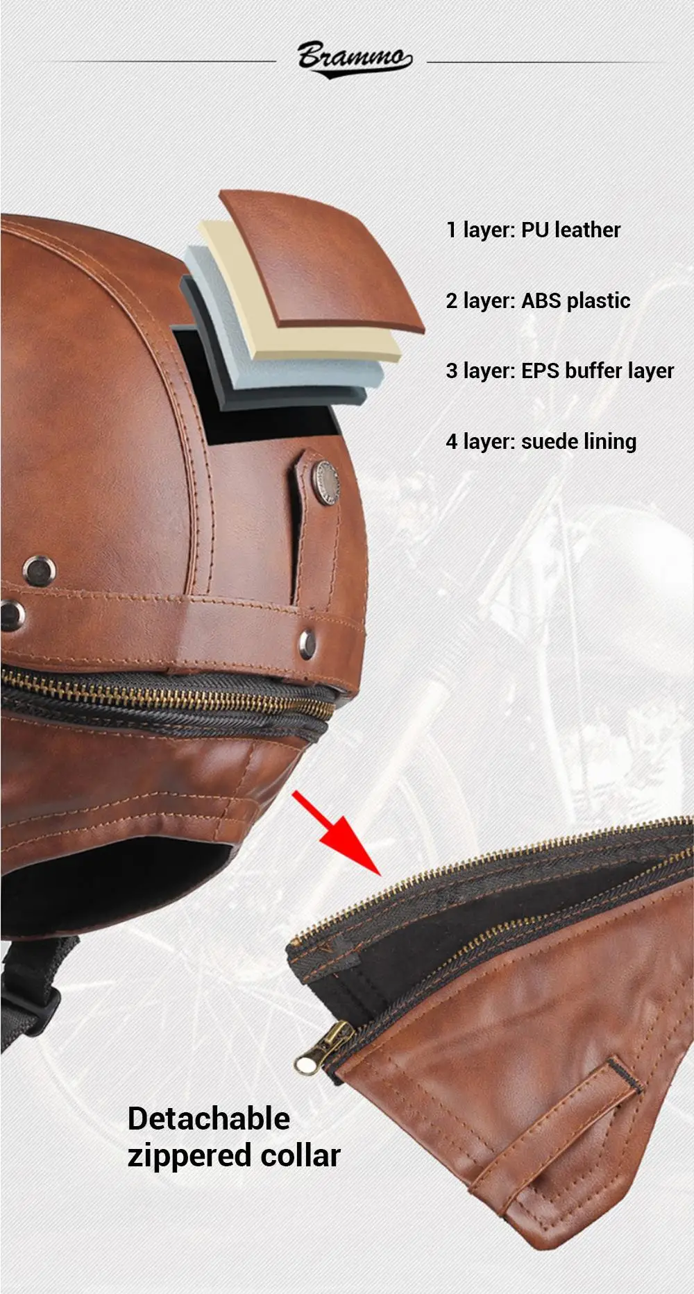 Le casque de moto rétro marron avec visière est inspiré des modèles militaires vintage allemands. Il séduit par son design sobre, sa finition façon cuir et son intérieur confortable. Parfait pour affirmer son style lors de balades tranquilles, de séances photo, ou dans un vestiaire déco à l’esprit biker.