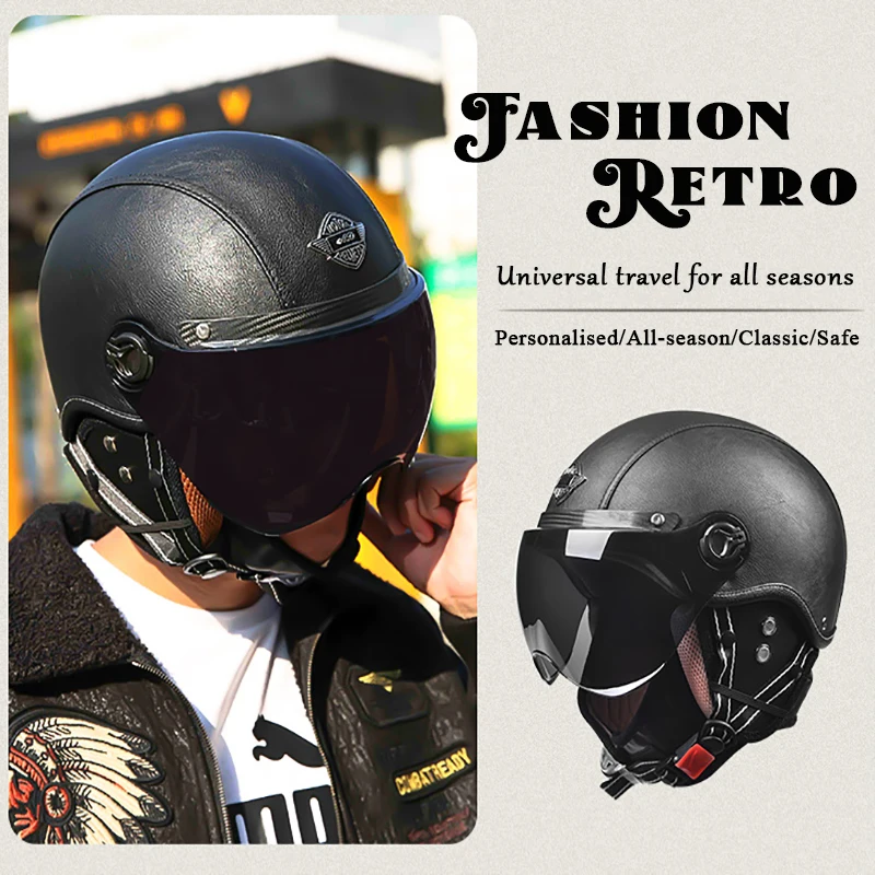 Le casque moto rétro AD s’adresse aux motards et scootéristes qui recherchent un équipement au look vintage sans renoncer à l’essentiel du confort et de la protection. Inspiré des casques rétro emblématiques, il affiche une silhouette sobre et élégante, parfaitement adaptée aux motos néo-rétro, aux scooters urbains et aux préparations personnalisées.