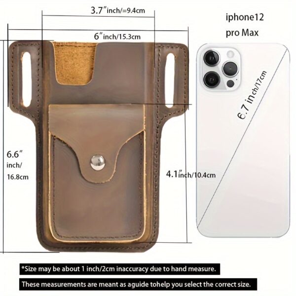 Coque de téléphone en cuir véritable à passer à la ceinture. Style motard vintage, compatible iPhone Pro Max. Personnalisable avec une gravure discrète. Un accessoire pratique, élégant et sécurisé pour les passionnés de route. Contrôlé et préparé dans notre atelier avant expédition.