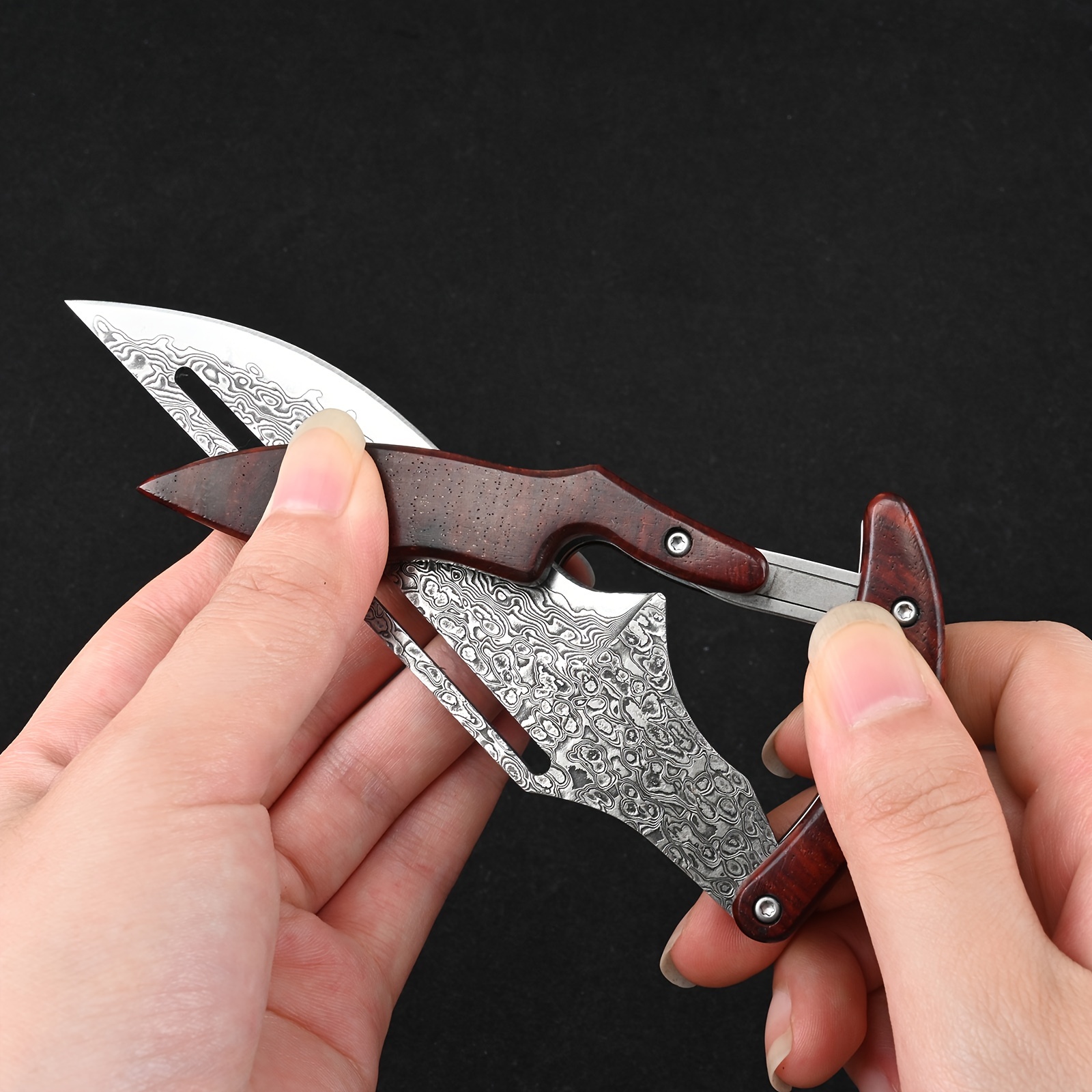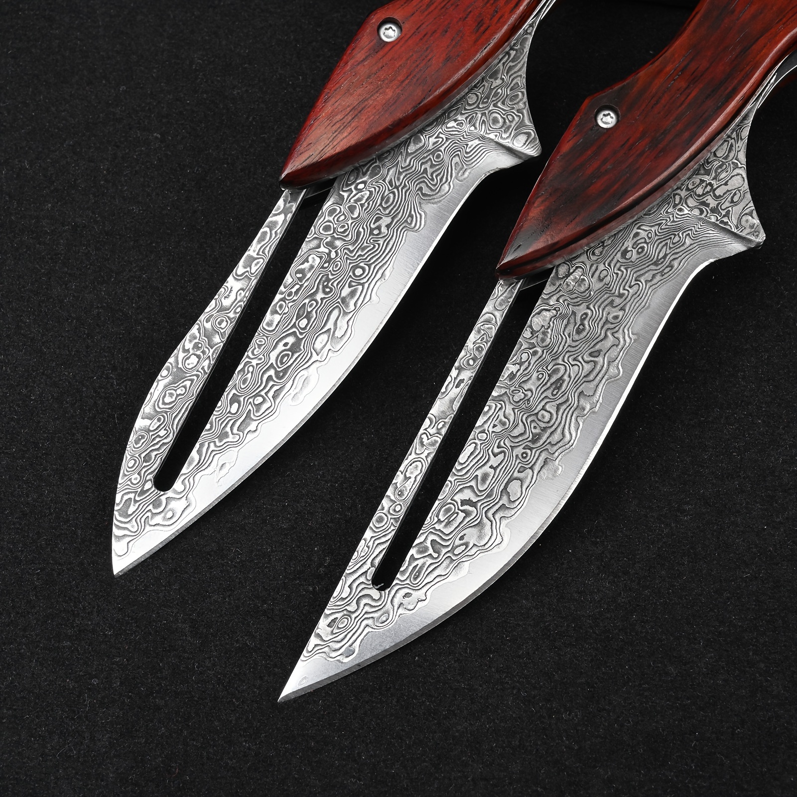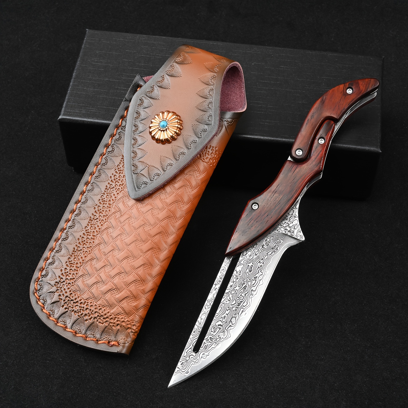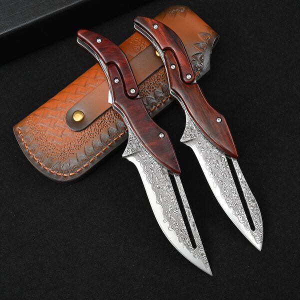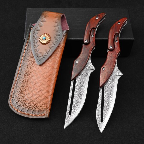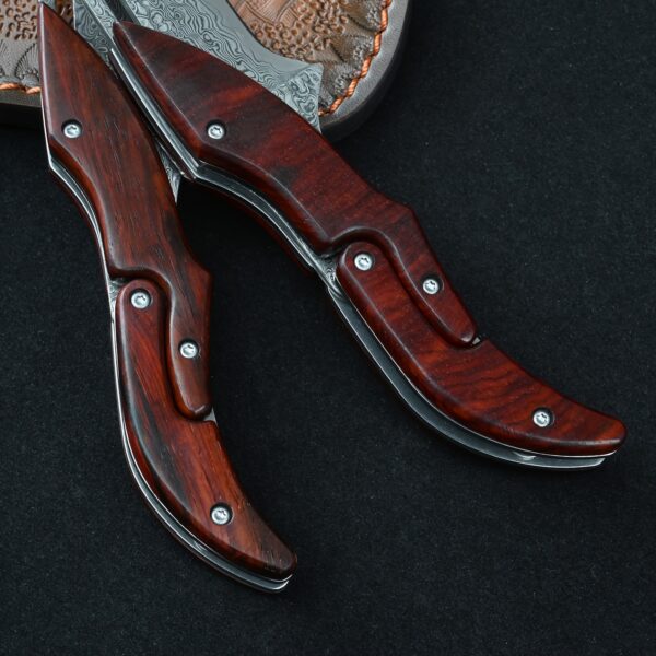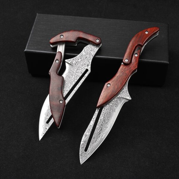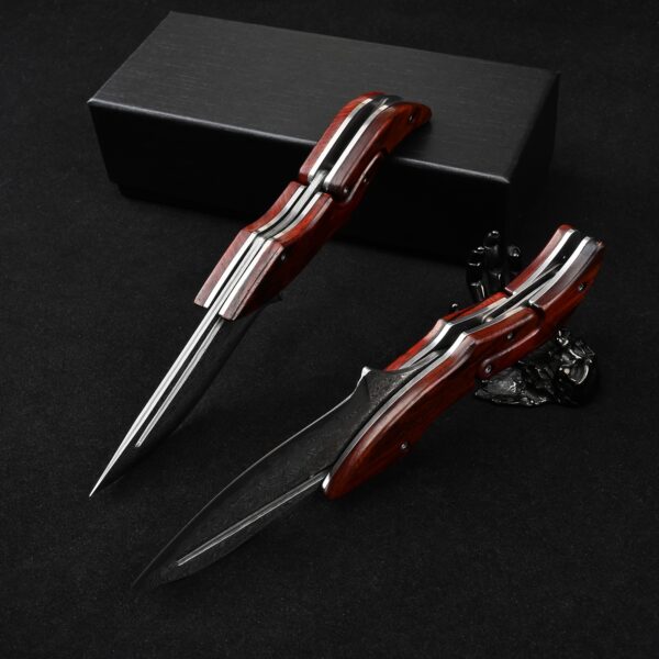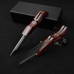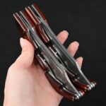 Sa lame en acier Damas haute qualité offre une coupe nette et durable. Chaque motif sur la lame est unique, rappelant le travail artisanal des forgerons. Son manche ergonomique assure une prise en main sûre, même dans les conditions les plus exigeantes. L’ouverture fluide et le verrouillage solide en font un compagnon fiable pour toutes les situations.