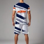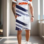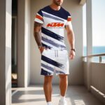 Tu veux une tenue qui fait le job tout en envoyant du style ? Voilà un ensemble estival pour homme qui t’en met plein la vue. Ce t-shirt à col rond avec un imprimé graffiti 3D bleu et blanc est original, graphique et bien pensé pour les journées chaudes. Accompagné de son short à cordon confortable, c’est le duo gagnant pour ceux qui veulent rester stylés, sans cramer en plein soleil.