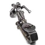La figurine moto métal est une pièce de décoration originale, entièrement fabriquée à la main à partir de métal recyclé. Assemblée avec soin à partir de boulons, écrous, rondelles et fils métalliques soudés, cette sculpture représente un chopper stylisé, fidèle à l’esprit biker.