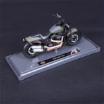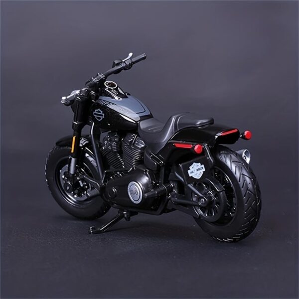 Cette miniature de 11 cm, fidèle au design massif et rebelle du Fat Bob, est dotée d’un châssis en alliage, de pneus en caoutchouc et de détails travaillés comme les échappements, la fourche inversée, la selle biplace et la teinte noir mat ou vert army. Le souci du réalisme est bien là, jusque dans les logos Harley moulés.