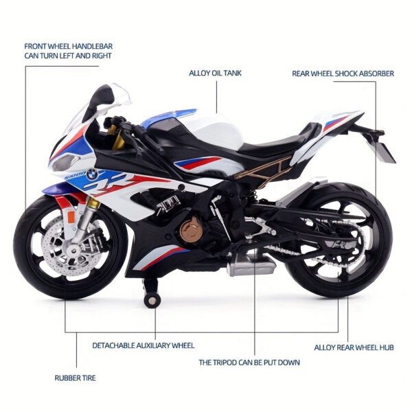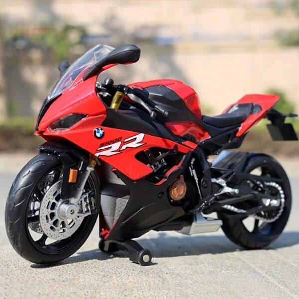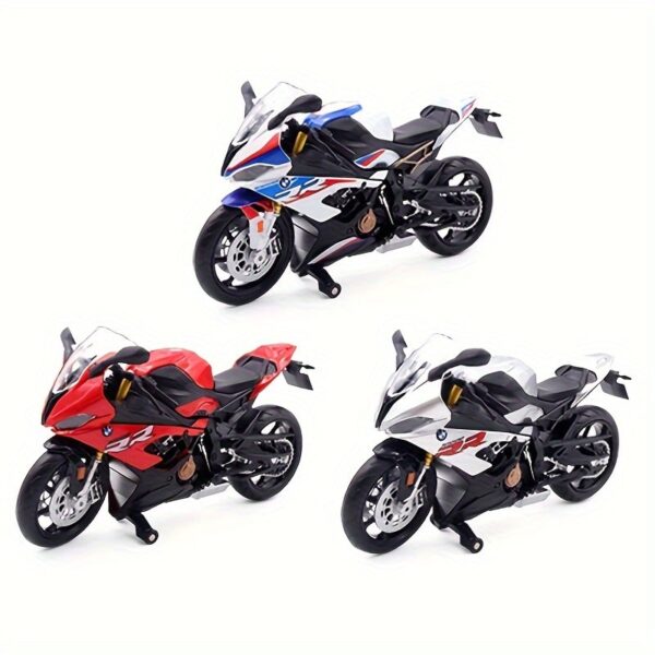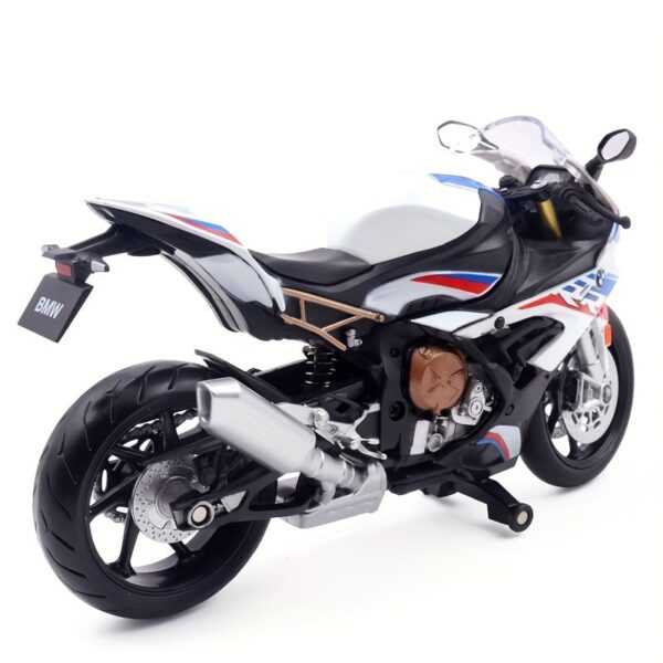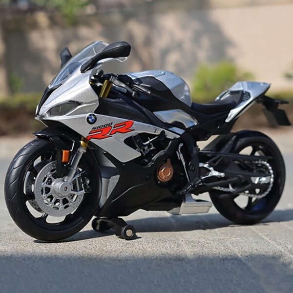 Moto miniature BMW S1000RR échelle 1/12. Idéale pour collection, déco motard ou cadeau. Trois coloris disponibles.