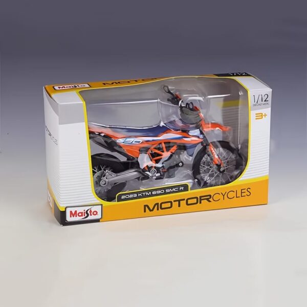 Moto miniature KTM 690 SMC échelle 1/12. Parfaite pour collection, déco motard ou cadeau.