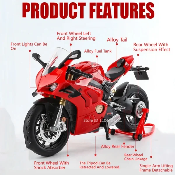 Le modèle V4S met en avant une finition noire élégante accompagnée de détails réalistes : disque de frein ajouré, ligne d’échappement chromée, optique avant fine, pneus texturés et guidon précis. C’est un objet décoratif qui rappelle les grandes routières conçues pour avaler les kilomètres, avec cette sensation de confort et de puissance que beaucoup apprécient. À offrir pour un anniversaire, une fête, un remerciement ou simplement pour faire plaisir à un passionné.