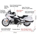 Voici une moto miniature style touring en échelle 1:9, pensée pour les passionnés qui aiment retrouver l’esprit de la route dans leur déco. Avec sa silhouette massive, son carénage travaillé et ses valises latérales fidèlement reproduites, cette maquette en alliage moulé offre un vrai plaisir visuel, que ce soit posée sur un bureau, une étagère ou intégrée dans un univers motard plus complet. Un bel objet pour se faire plaisir ou pour offrir un cadeau original à un motard.