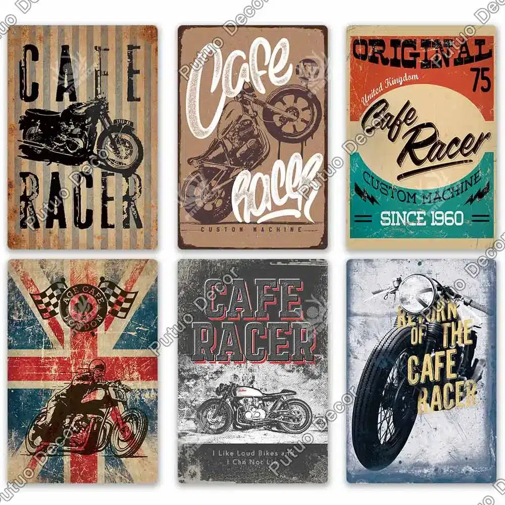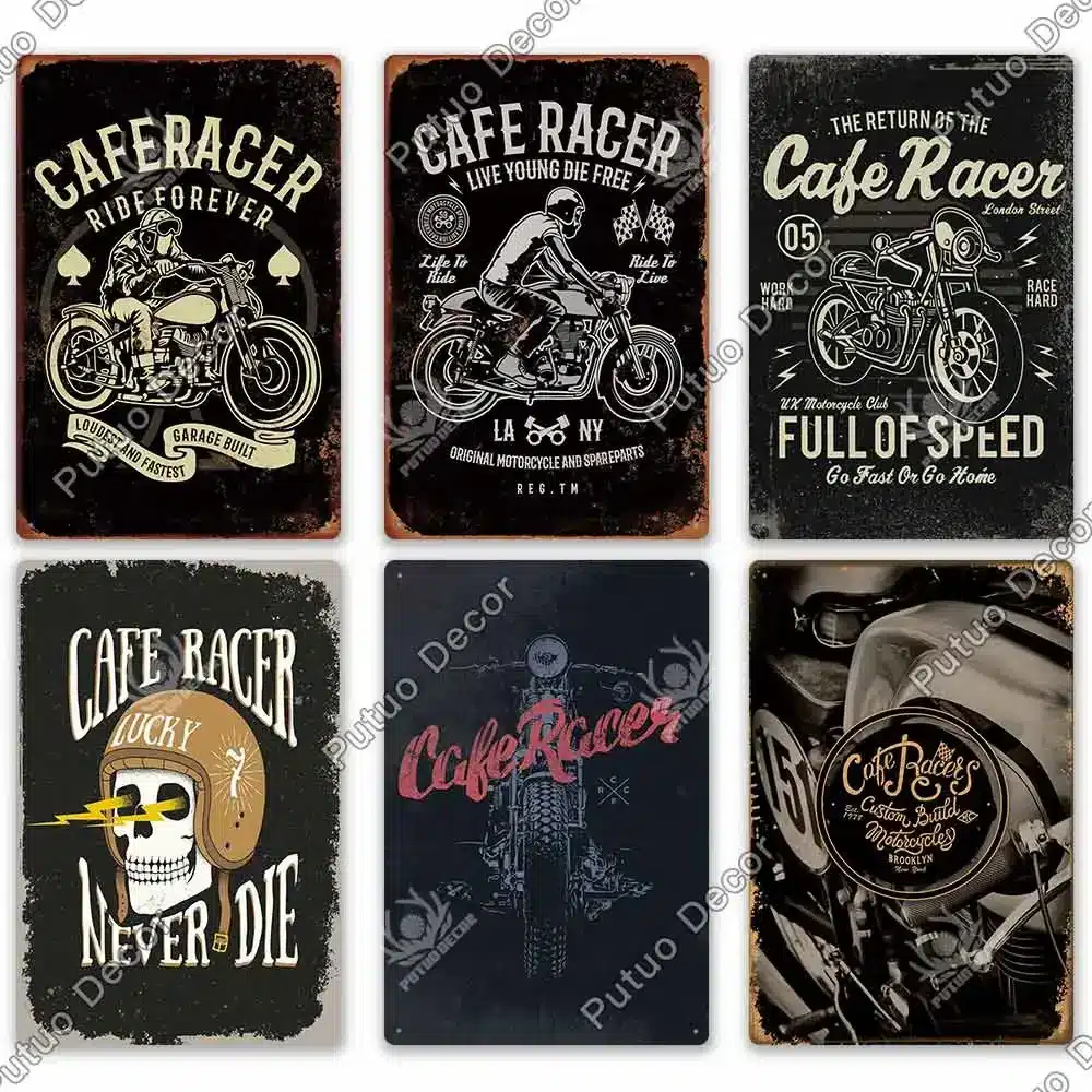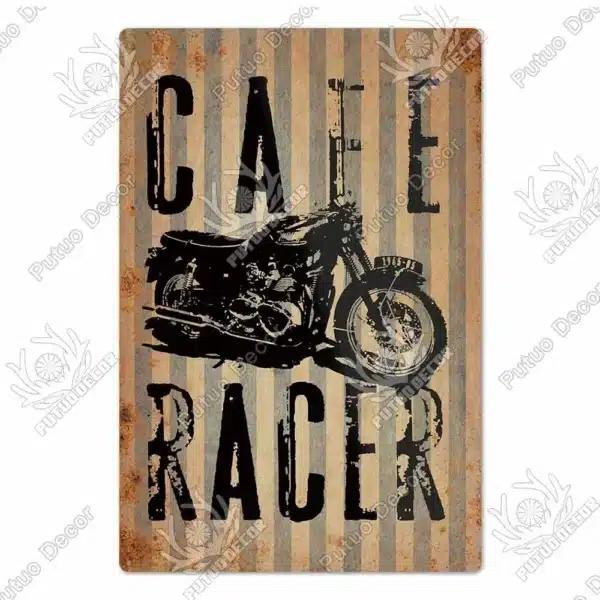 Plaque métal Café Racer rétro pour garage ou atelier moto. Style vintage biker, effet vieilli. Idée cadeau originale pour motards passionnés. Disponible en plusieurs tailles. Livraison soignée après contrôle qualité.