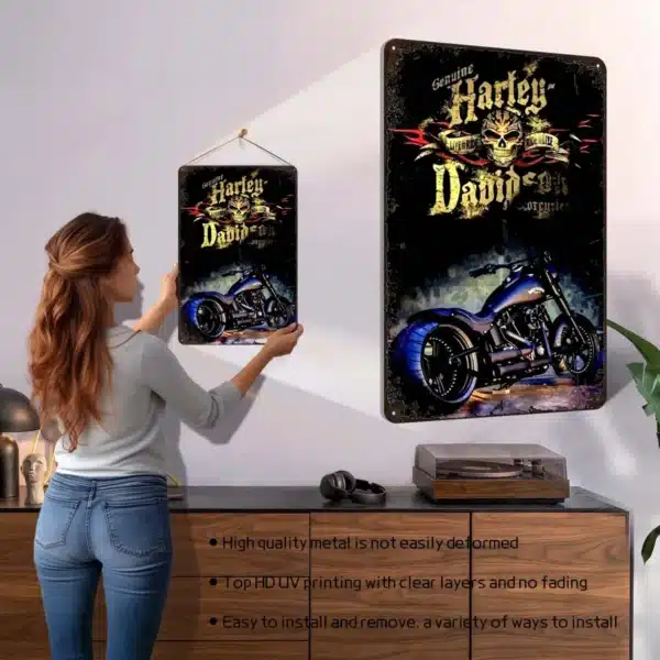 Cette plaque est un fan art non officiel inspiré de l’univers Harley Davidson. Elle est destinée à un usage décoratif et artistique.