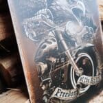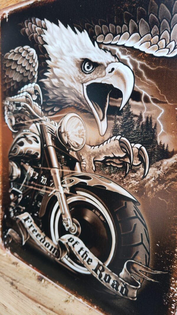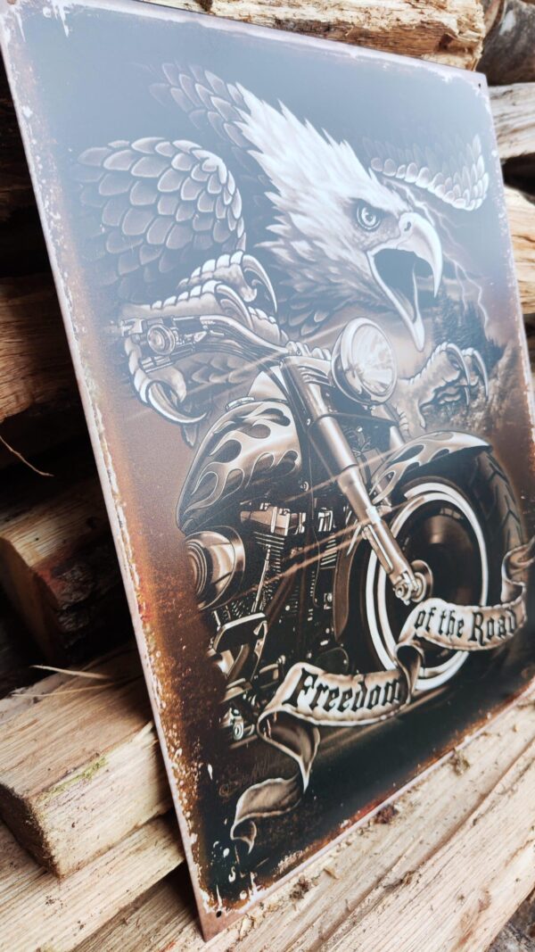 Fabriquée aux USA, cette Plaque métallique USA Freedom of the Road se démarque par sa qualité exceptionnelle : une tôle d’acier robuste, une finition haut de gamme et des couleurs d’impression éclatantes.