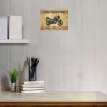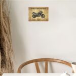 Mesurant 20 x 30 cm, cette plaque est fabriquée en métal léger avec des bords arrondis pour une installation facile. Son effet vieilli lui donne un charme authentique qui plaira à tous les amateurs de motos classiques et d’objets de caractère.