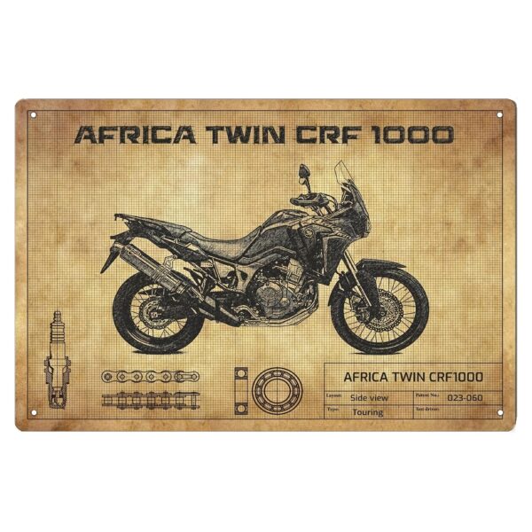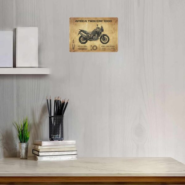 Plaque murale en métal 20×30 cm Africa Twin CRF1000, style rétro. Expédition soignée depuis notre atelier. Ce produit ne peut pas être personnalisé.