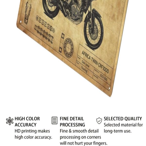 Cette plaque murale en métal rend hommage à la légendaire Africa Twin CRF1000, une moto iconique connue pour son style aventurier et sa robustesse. Avec son design vintage et son illustration détaillée, elle s’intègre parfaitement dans un garage, un bureau ou une pièce dédiée à la passion moto.