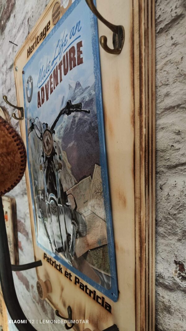 le porte casque est fabriqué à la main en France avec une garantie de deux ans. La plaque et de qualité Allemande Nostalgic Arts Votre satisfaction est notre priorité.