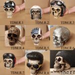 | Finition du support casque | 1 Boule en bois sur tige, 2 Tête de mort en résine, 3 Bielle en chêne, 4 Boule en cuir, 5 Bielle ALU et Top en chêne, 6 Piston Tête de mort sur tige, 7 Piston sur tige, 8 Tête de mort 3D en bois sur tige, 9 Plaque seul sans support |