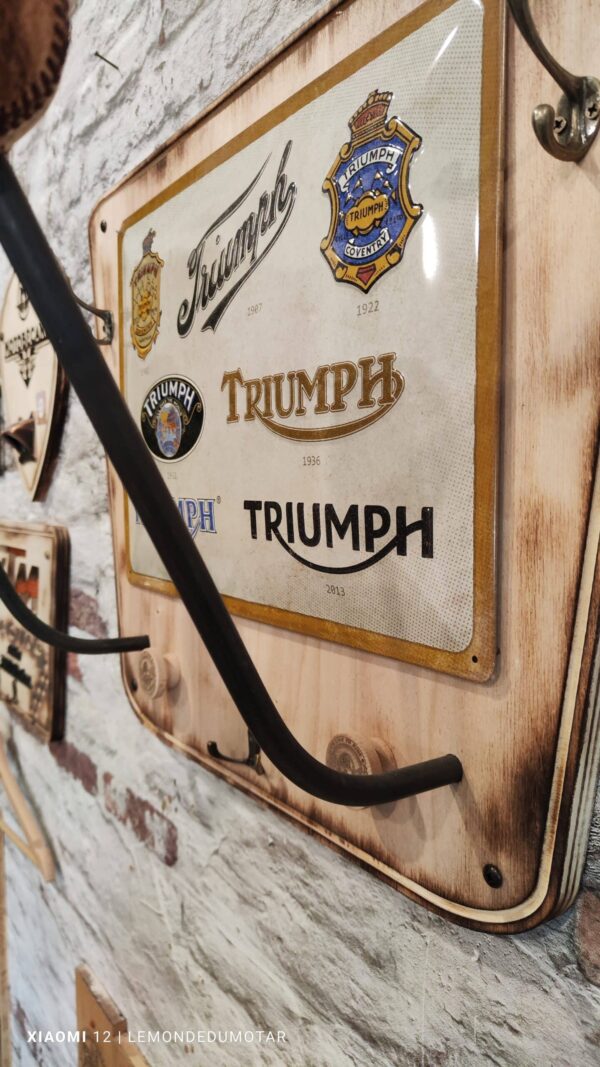 Offrez-vous le meilleur de l’expérience motarde avec notre porte-casque moto plaque Triumph logo évolution . Avec son design unique, sa praticité sans égale, son artisanat de qualité supérieure et sa livraison gratuite en point relais, notre produit est le compagnon idéal pour les amateurs de moto. Ne manquez pas cette occasion de vous distinguer sur la route et de montrer votre passion pour l’univers Triumph . Commandez dès maintenant votre porte-casque et préparez-vous à vivre des aventures inoubliables avec style et confort !