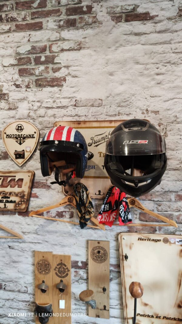 le porte-casque est fabriqué à la main en France avec une garantie de deux ans. La plaque et de qualité Allemande Nostalgic Arts Votre satisfaction est notre priorité.