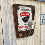 Mes créations déco, porte casque, accessoires sont un hommage aux grandes marques qui ont marqué l’histoire de la moto avec leur savoir-faire et leur imagination