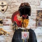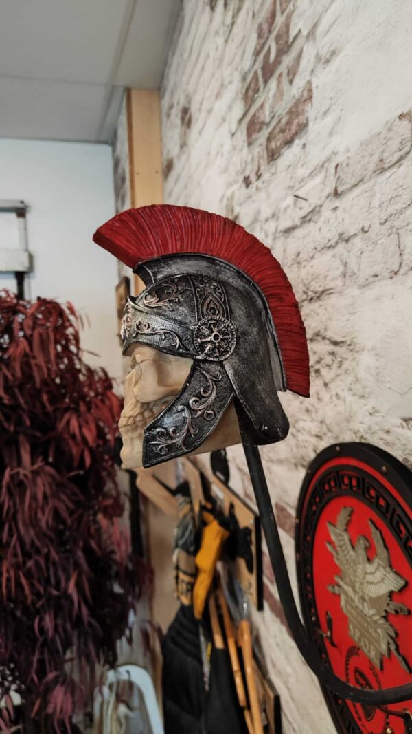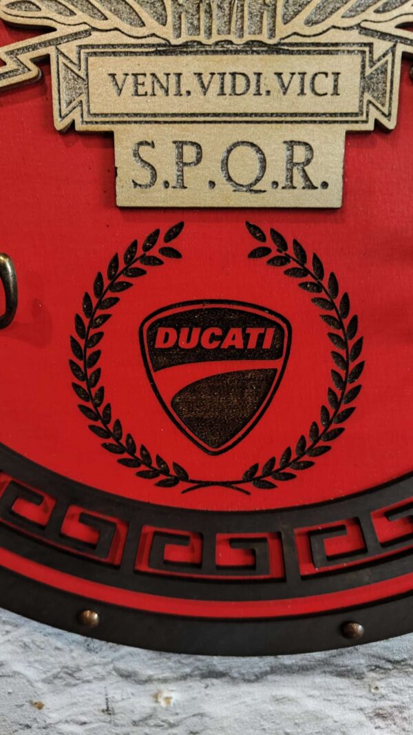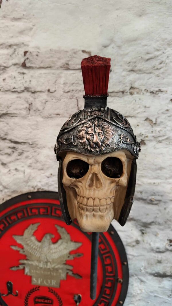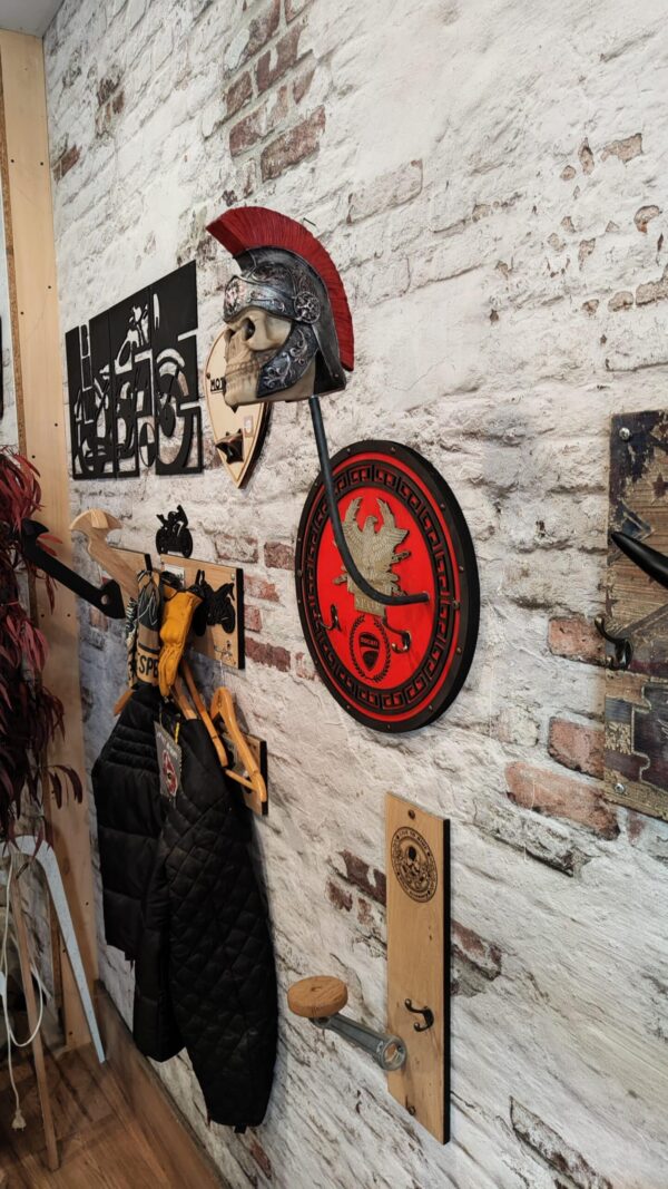 Porte casque moto romain en bois, inspiré de l’Empire romain, est une pièce unique conçue pour les motards passionnés d’histoire et de culture antique.
