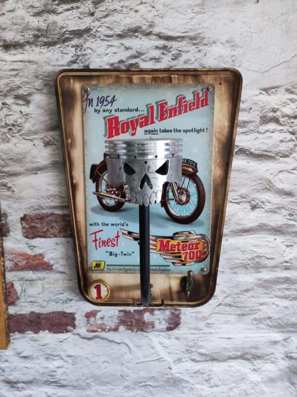 Grace a ce Porte casque décor ROYAL ENFIELD, protégez ce qui vous protège – tenez votre casque en sécurité et prêt : à la maison, au garage ou au bureau