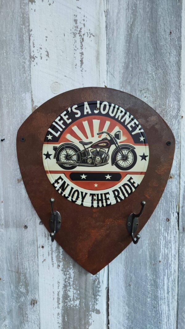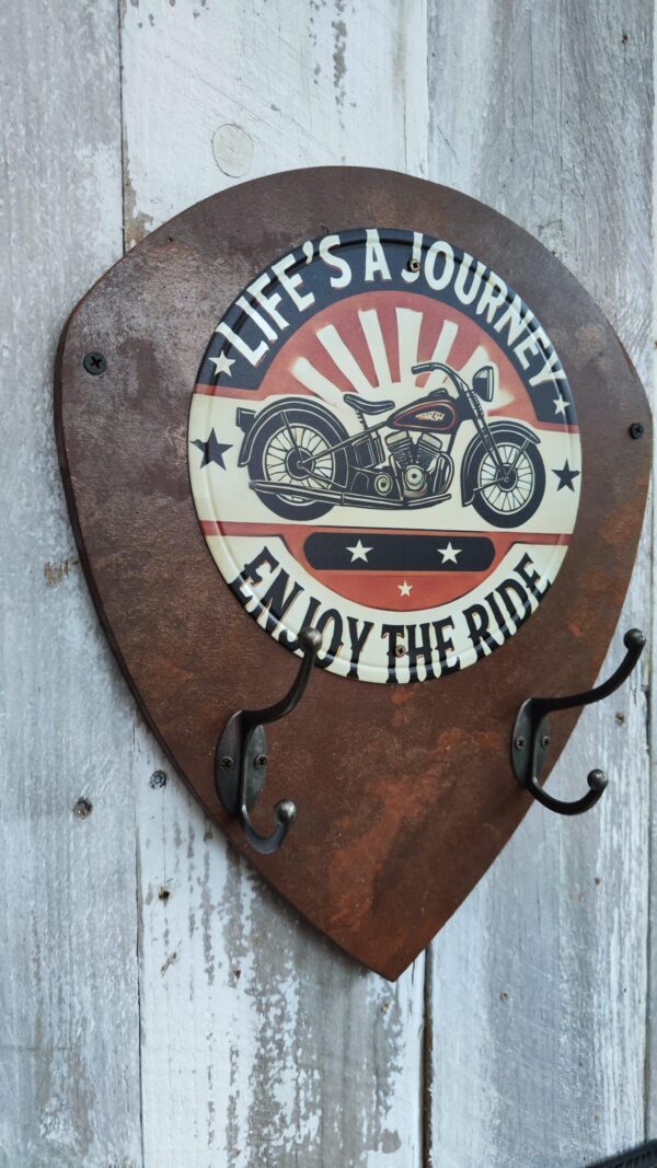 Apportez une touche d’authenticité à votre espace avec ce Porte-manteaux écusson rouillé. Ce modèle décoratif arbore une plaque métallique ronde, avec un design vintage mettant en scène une moto classique. Avec ses crochets robustes en métal, il est parfait pour organiser vos accessoires moto, tels que casque, gants et clés, tout en ajoutant du caractère à votre garage, atelier ou pièce dédiée à la moto. Ce porte-manteau est conçu pour les passionnés de moto et les amateurs de décoration rétro, alliant en même temps praticité et esthétique.