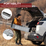 Fabriquée en aluminium de haute qualité, cette rampe pliable supporte une charge maximale de 400 kg. Parfaite pour motos, quads, tondeuses, scooters ou petits engins motorisés, elle offre une stabilité optimale. Sa surface antidérapante réduit les risques de glissade, même en conditions humides, garantissant un usage sécurisé.