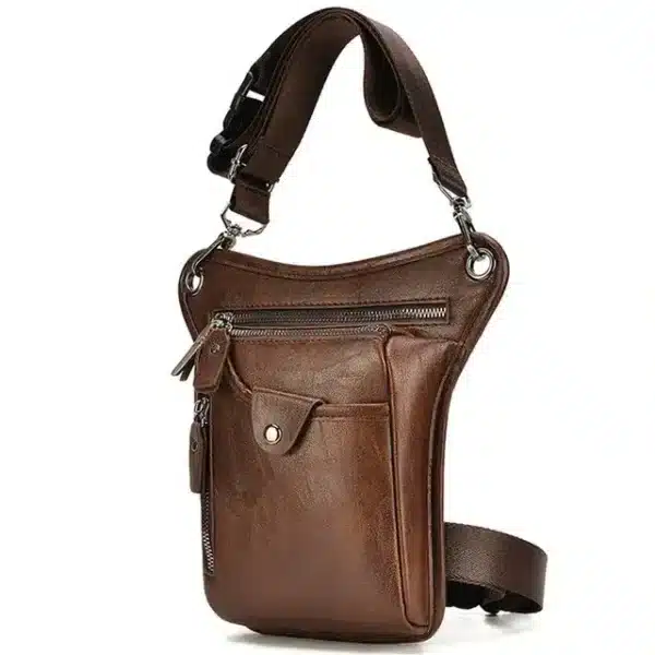 Sacoche de jambe en cuir PU pour motard, durable et élégante, avec plusieurs compartiments. Ajustable, personnalisable, garantie 2 ans, livraison gratuite. Parfait pour vos trajets à moto !