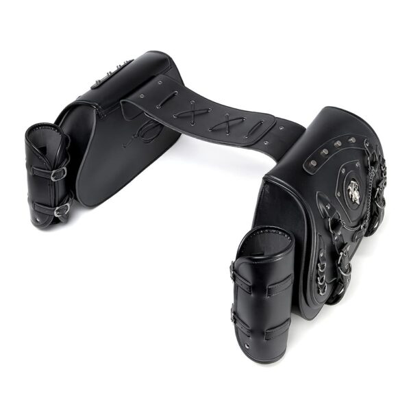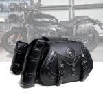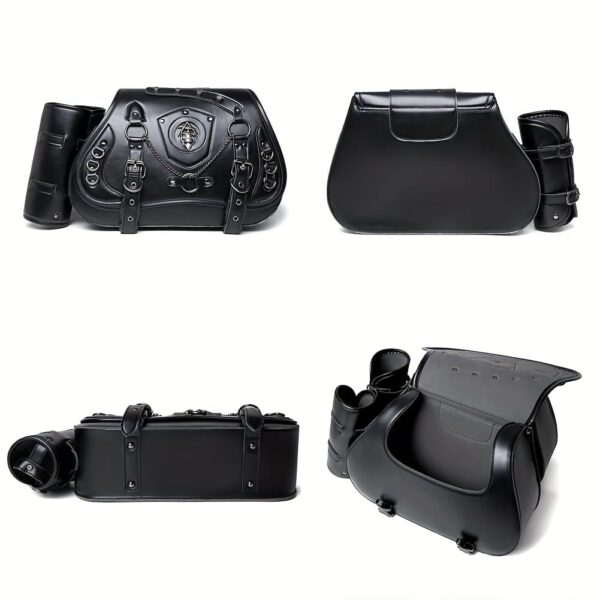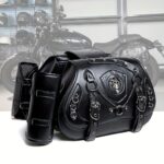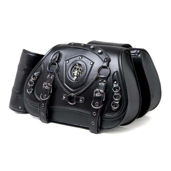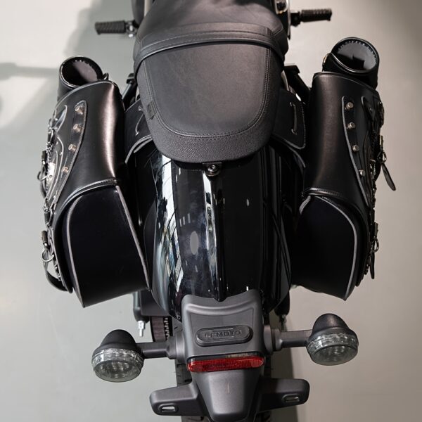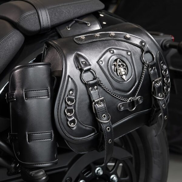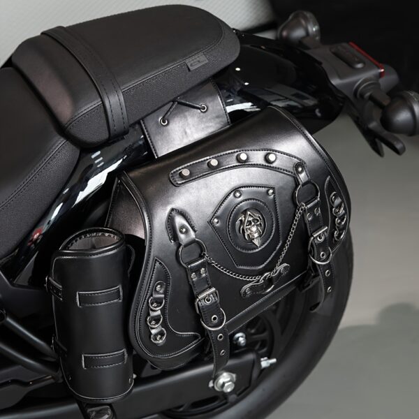 Ajoute du style et du rangement à ta bécane avec ces sacoches de selle moto style punk, parfaites pour cruiser, bobber ou roadster urbain. Conçues en simili cuir épais, elles résistent aux éclaboussures et à l’usure du quotidien tout en affichant une gueule unique façon rock vintage.