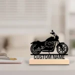Avec sa silhouette de moto finement découpée et son socle personnalisable,