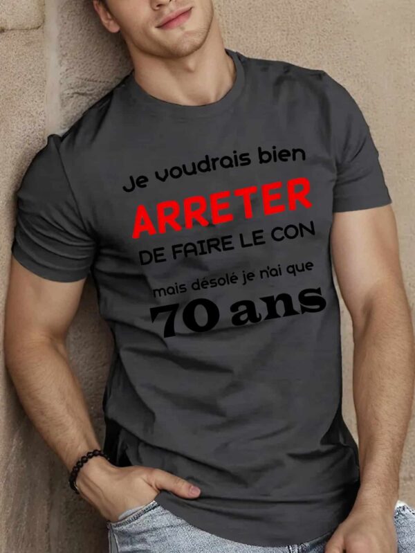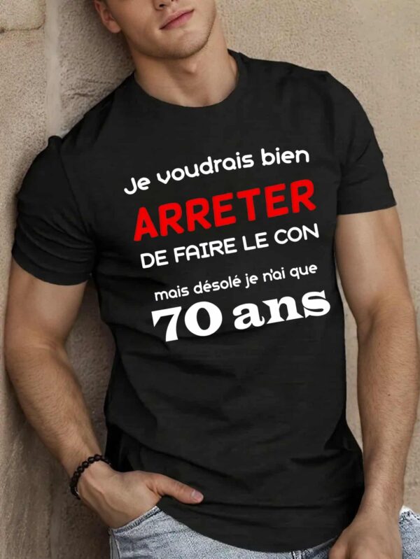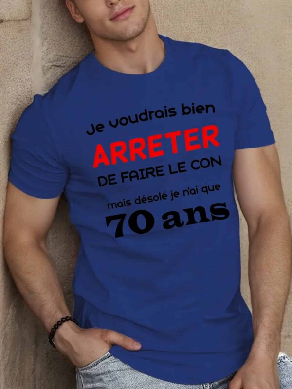 Affichez votre sens de l’humour et votre style avec ce t-shirt T-shirt été homme 70 ans – Imprimé géométrique, col rond d’été conçu spécialement pour de grands hommes forts. Son imprimé géométrique « 70 ans » apporte une touche d’originalité à votre tenue, tandis que sa coupe décontractée assure un confort optimal tout au long de la journée.