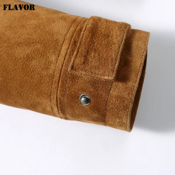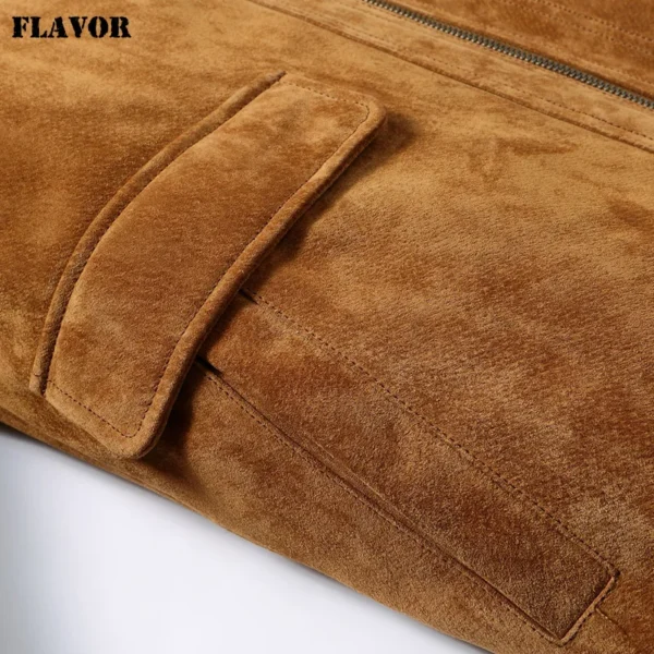 Veste cuir suédé homme au style motard vintage. Chaude, élégante et confortable, idéale pour l’hiver. Col amovible, doublure intérieure et finitions soignées pour un look moto authentique au quotidien.