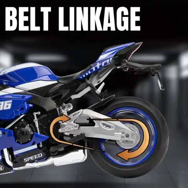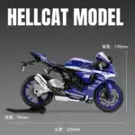 Moto miniature Yamaha YZF R1M en métal diecast, échelle 1/9. Modèle réduit détaillé avec base de présentation. Parfait pour collectionneurs, passionnés de racing ou comme déco originale pour un motard.